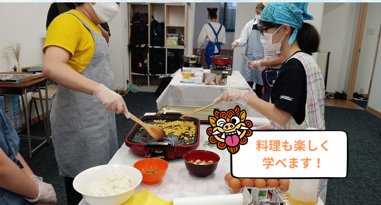 色々な食材を知り、道具を使いこなし、グループで食事を作って美味しく楽しく食べることを目指しています。苦手な食材も自分で作ると食べられる子も多いです。
